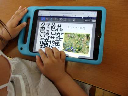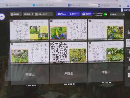 5月19日(金) 2年国語 公開日 2023/05/19 更新日 2023/05/19 できごと 育てているミニトマトの観察したことを、国語の授業「ていねいにかんさつして きろくしよう ○○かんさつ名人になろう」で、見つけたことを友達と話し合ったり、文章を読み合ったり、発表し合ったりしました。