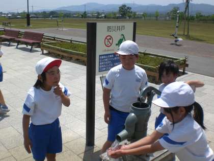 防災備蓄倉庫をしっかり見学した後は、外に出て公園の見学と自由時間で時間を過ごしました。