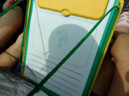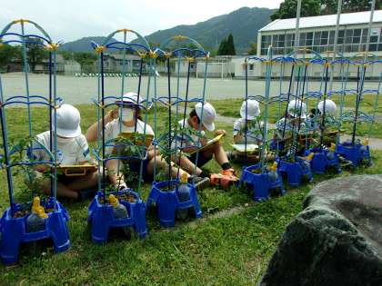 「かんさつ名人になろう」で、育てているミニトマトを見ながら絵を描き、じっくりと観察をしました。