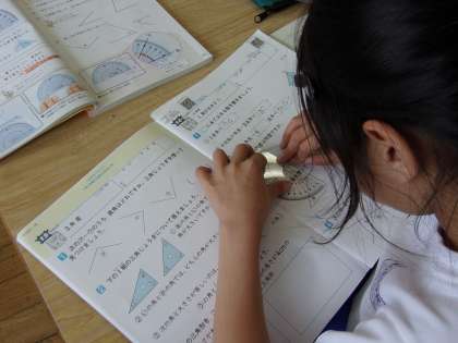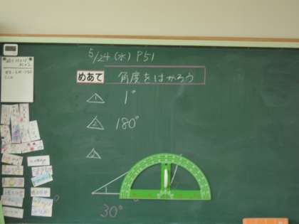今日は、分度器を使って角度を測る学習をしました。