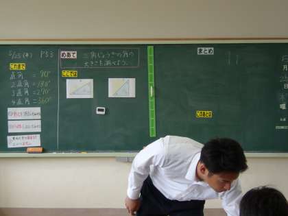 5月25日(木) 年度始訪問(4年) 公開日 2023/05/25 更新日 2023/05/25 できごと 単元「角度」の学習で、これまでに分度器の使い方を知り、分度器を使いながら90°、180°、270°、360°について学んできました。今日は、めあて「三角定規の角の大きさを調べよう」を立て、分度器を使いながら三角定規の角度を測りました。