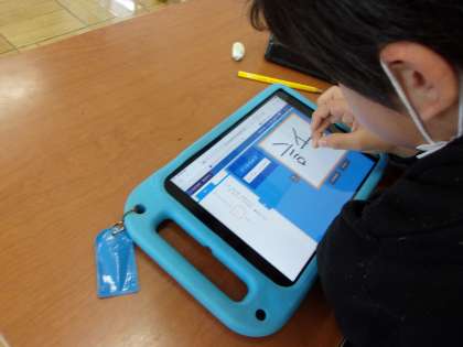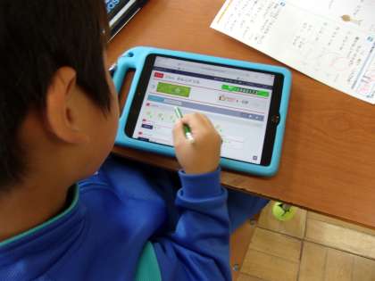 今日は、漢字の学習をしました。授業の後半ではタブレットを使って、個別学習を行いました。
