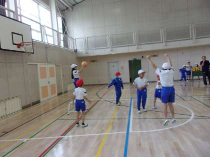 5月26日(金) 3・4年体育 公開日 2023/05/26 更新日 2023/05/26 できごと ポートボールのゲームを行いました。ここでは、ルールを工夫したり作戦を選んだり、チーム対チームで友達と力を合わせて競い合ったりする楽しさや喜びに触れるられるようにしていきます。試合の様子を見ていると、相手のチームが得点したときも、自分のチームが得点したときのように喜び拍手をする姿が見られ、とても微笑ましく感じられました。