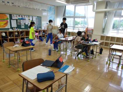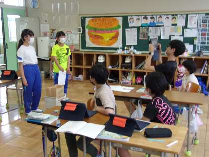 6月14日(水) 6年国語 公開日 2023/06/14 更新日 2023/06/14 できごと 「わたしにできること」で、今日は、めあて「みんな(1〜6年)が見て、取り組むことのできる提案ビデオを作成しよう」を立て、タブレットを使って試しの撮影を行いました。