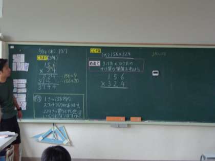 6月14日(水) 4年算数 公開日 2023/06/14 更新日 2023/06/14 できごと めあて「3けた×3けたのかけ算の筆算を考えよう」を立て、これまでの学習「3けた×2けたの筆算のやり方」をもとに一人一人でやり方を考え、自分の考えを発表し合いました。
