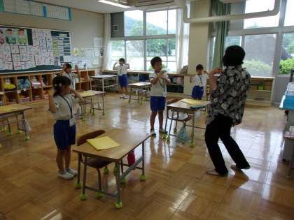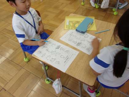 6月15日(木) 1年外国語活動 公開日 2023/06/15 更新日 2023/06/15 できごと まず、1〜10の数をジェスチャーを入れながら唱えるトレーニングをし、後半では、めあて「いろいろな どうぶつを えいごで いおう」を立て、ビンゴゲームをしながら英語での動物の言い表し方を学習しました。
