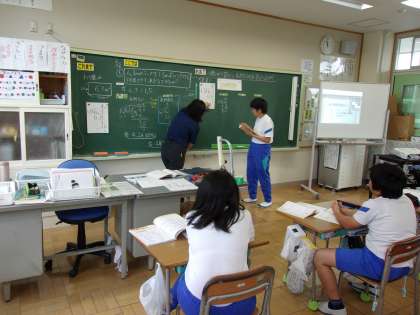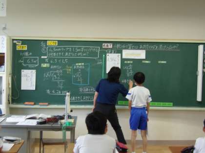 6月16日(金) 5年算数 公開日 2023/06/16 更新日 2023/06/16 できごと めあて「小数のわり算ではあまりをどのように表したらよいのか?」を立て、問題「6.3mのテープを1.5mずつに分けると、何本できて、あまりは何?」をもとに考えました。今日は、鬼石小学校の先生も見に来てくれました。