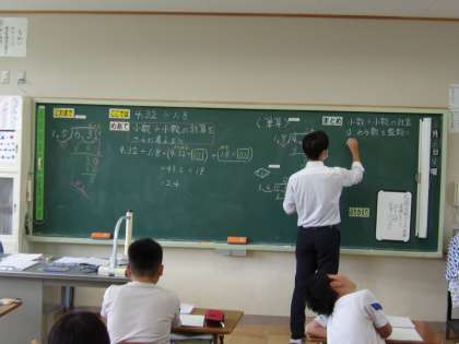 6月20日(火) 5年算数 公開日 2023/06/20 更新日 2023/06/20 できごと めあて「小数÷小数の計算をさらに考えよう」を立て、4.32÷1.8をもとに考えました。まとめでは、小数÷小数の計算は、わる数を整数にして計算するとよいとまとめられました。