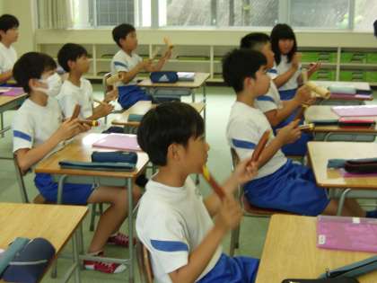 6月20日(火) 5年音楽 公開日 2023/06/20 更新日 2023/06/20 できごと めあて「いろいろな楽器の重なり合うひびきを楽しみながら演奏しましょう」を立て、ウッドブロックや、クラベス、カスタネットを使ってリズム打ちをしました。