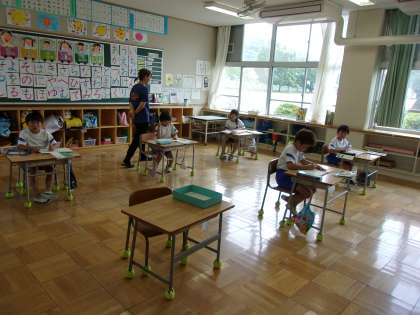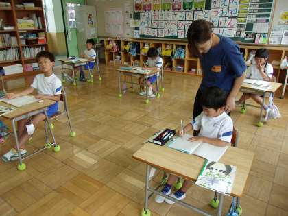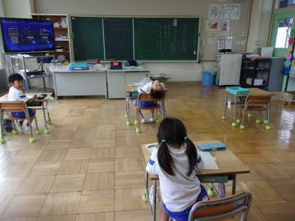 6月21日(水) 1年国語 公開日 2023/06/21 更新日 2023/06/21 できごと 「おもちやと おもちゃ」で、拗音について学習をします。めあて「小さいや、ゆ、よがつくことばを あつめよう」を立て、「しゃ」「しゅ」「しょ」「きゃ」「きゅ」「きょ」の付く言葉を見つけていました。子どもたちは、「何があったかな」と一生懸命取り組んでいました。
