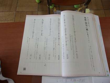 「短歌・俳句に親しもう」で、今日は、短歌を声に出して読んだり、内容を想像したりしました。