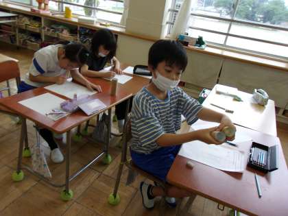 6月26日(月) 3年理科 公開日 2023/06/26 更新日 2023/06/26 できごと カイコも大き成長し、繭を作り始めたので、繭の観察をしました。子どもたちは、大切に育ててきたカイコが繭になったことで、どこか嬉しそうでした。