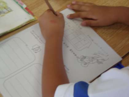 6月28日(水) 1年国語 公開日 2023/06/28 更新日 2023/06/28 できごと 「おおきなかぶ」の学習で、めあて「おじいさんと おばあさんが なんといったのかを みつけ きもちちをかんがえよう 」を立て、かぎ括弧に着目しながら学習を進めました。