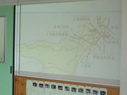 ここでは、身近な地域や自分たちの市区町村の位置、地形や土地利用、交通の広がり、市役所などの主な公共施設の場所と働き、古くから残る建造物の分布などを基に、身近な地域や市区町村の様子を大まかに理解する学習を行っています。今日は、藤岡市の交通網の様子について学習しました。
