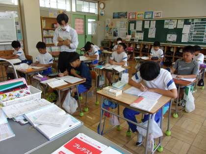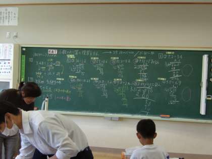 7月4日(火) 5年算数 公開日 2023/07/04 更新日 2023/07/04 できごと 小数のわり算の復習として、教科書の問題、ドリル等を使って、たくさんの計算問題に取り組みました。その結果、最後は、どの子も疲れ果てている様子でした。それだけ集中して取り組めたのだと思います。