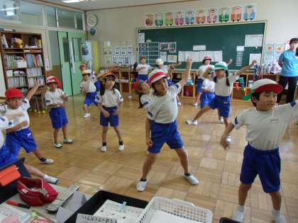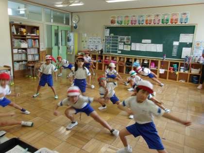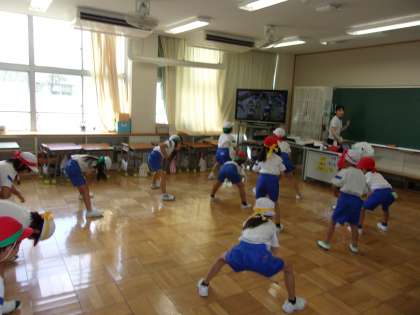 9月14日(木) 1,2年体育 公開日 2023/09/14 更新日 2023/09/14 できごと 暑さ指数(WBGT)が31を超えているため、エアコンンの効いた教室での体育となりました。運動会で踊るソーラン節を繰り返し練習をしました。
