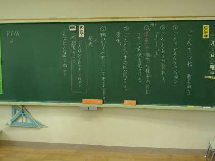 これから「ごんぎつね」の学習で、どのようなことを学習していくかの見通しをもち、単元全体のめあてを立てました。