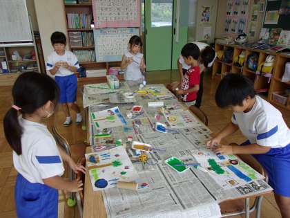 9月18日(月) 1年図工 公開日 2023/09/19 更新日 2023/09/19 できごと 「ぺったん コロコロ」の学習で、めあて「ぺったん コロコロして いろいろなかたちを みつけよう」を立て、作品作りをしました。