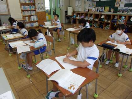 9月21日(木) 4年国語 公開日 2023/09/21 更新日 2023/09/21 できごと 「ごんぎつね」の学習で、めあて「1場面を読み、ごんの行動や気持ちについて考えよう」を立て読み取りをしました。前時では、場面の情景や、ごんの行動描写などから、ごんの気持ちを捉えましたが、今日は、ごんがしたことから、ごんの気持ちを考えました。