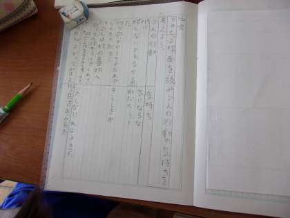 9月22日(金) 4年国語 公開日 2023/09/22 更新日 2023/09/22 できごと 「ごんぎつね」の学習で、めあて「2場面を読み、ごんの行動や気持ちを考えよう」を立て、読み取りを行いました。そして、授業の最後には1の場面でのごんの気持ちと、2の場面での気持ちを比べ、ごんの気持ちの変化について話合いました。