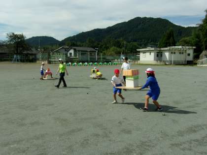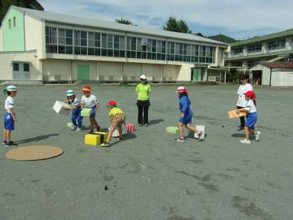 9月25日(月) 1,2年運動会練習 公開日 2023/09/25 更新日 2023/09/25 できごと 遊競技「ヘイお待ち!お届け回転寿司」の練習を行いました。友達と協力しながらお寿司に見立てたダンボールを落とさないように運んでいました。