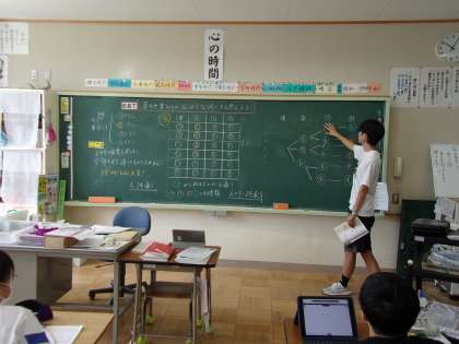 9月15日(月) 6年算数 公開日 2023/09/25 更新日 2023/09/25 できごと 「場合の数」の学習で、めあて「落ちや重なりがないような調べ方を考えよう!」を立て、図や樹形図での調べ方を学習しました。