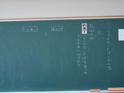 9月27日(水) 2年国語 公開日 2023/09/27 更新日 2023/09/27 できごと 「○○なかまのことばとかん字」で、めあて「いろいろなことばをさつめて、なかまにわけよう」を立て、家の人やお金に関する言葉を集めて仲間分けしました。