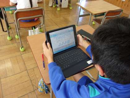単元のまとめとして、タブレットを使って練習問題に取り組みました。