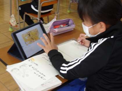 めあて「秋探し」を立て、秋を表す言葉について調べたり、「秋と言えば・・」で秋を連想したりしました。