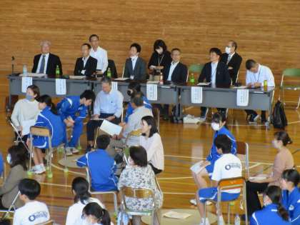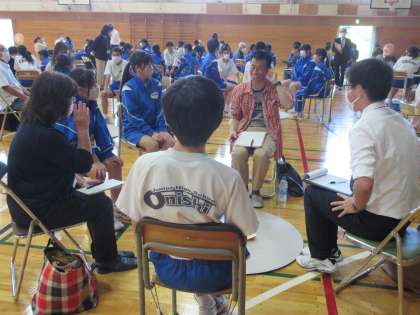 10月13日(金) いじめ問題解決に向けた教育懇談会2 公開日 2023/10/16 更新日 2023/10/16 できごと 簡単なアイスブレイクを行い和やかな雰囲気を作った後、ビデオ(NHK For School そのいじり大丈夫?)を視聴したり、鬼石中校生徒へのアンケートをした結果の発表や、鬼石中学校生徒会長の少年の主張の発表がありました。