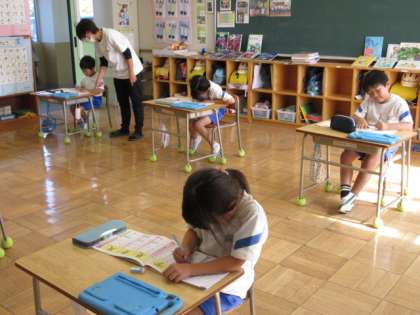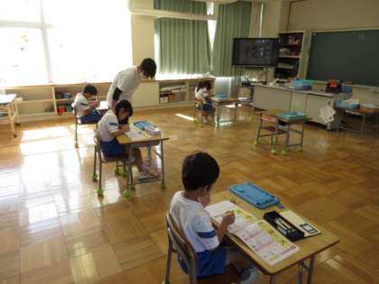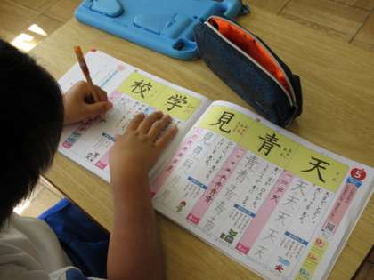 「天」「青」「見」「学」「校」の漢字を習い、練習をしました。