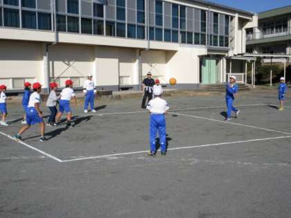 妙義団はドッジボールを行いました。チームでボールを譲り合いながら仲良く活動できました。