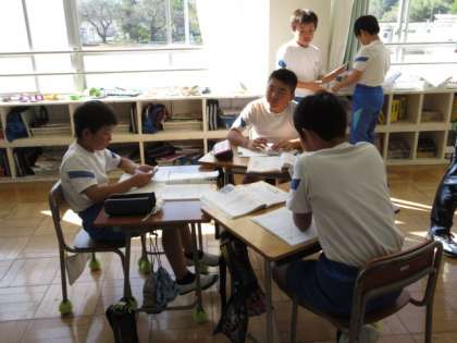 3つのコース「一人でやる」「2,3人でやる」「先生とやる」に分かれ、確かめの問題に取り組みました。