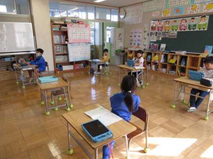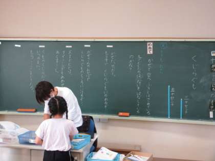 「くじらぐも」の学習で、めあて「かぜで空へふきとばされている子どもたちは、なにをはなしているのか?」を立て、想像を膨らませながら考えを発表し合いました。