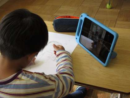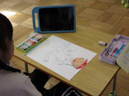 10月17日(火) 1年図工 公開日 2023/10/17 更新日 2023/10/17 できごと めあて「うんどうかいの えを かこう」を立て、ポイント「じぶんを大きくかく」に注意しながら絵を描きました。