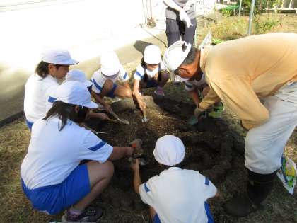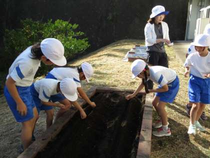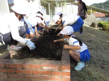 大根やほうれん草などの冬野菜を花壇に植えました。