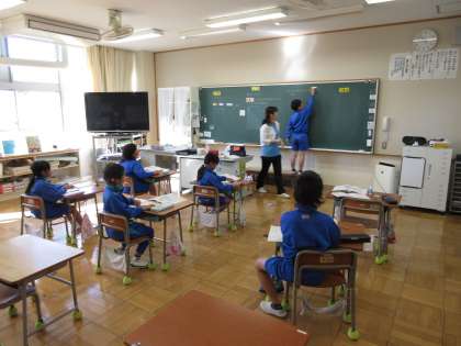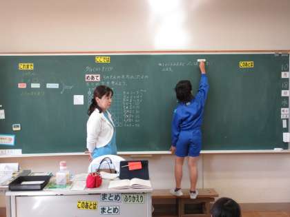 めあて「5のだんの九九のこたえのもとめ方を考えよう」を立て、5の段のきまりについて考えました。