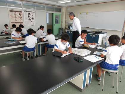 めあて「食塩やミョウバンのとける量を増やすにはどうすればよいか?」を立て、予想したり実験したりしました。