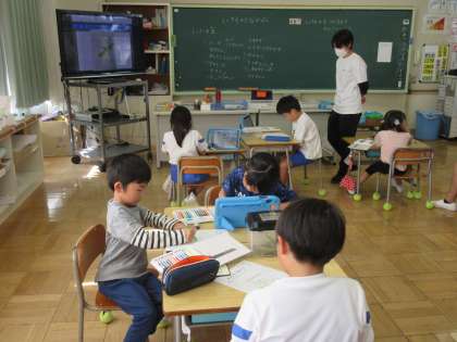 10月19日(木) 1年生活科「いきものとなかよし」 公開日 2023/10/19 更新日 2023/10/19 できごと バッタやトンボなど、校庭で捕まえた生き物をケースの外からじーっくりと観察します。上手に記録がかけたかな。