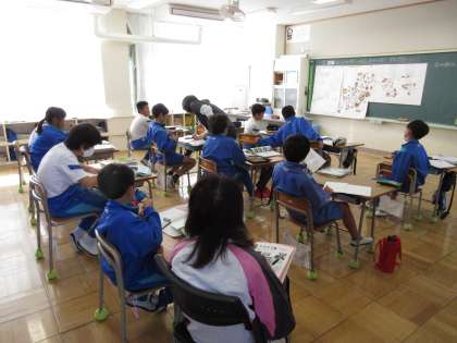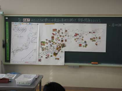 10月23日(月) 5年社会 公開日 2023/10/23 更新日 2023/10/23 できごと めあて「わたしたちが食べている食品の産地を調べて、学習の問題を立てよう」を立て、 今後の学習の見通しをもちました。
