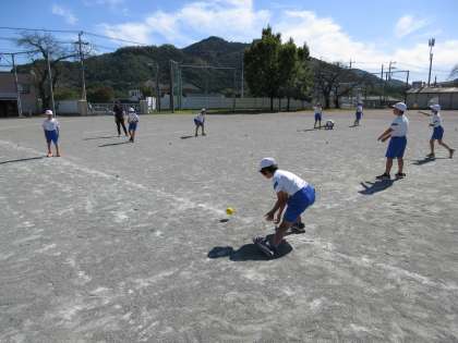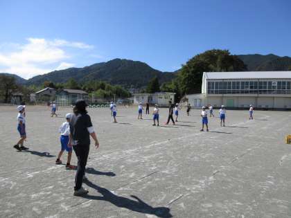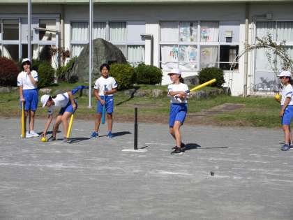 10月23日(月) 5,6年体育 公開日 2023/10/23 更新日 2023/10/23 できごと 教育実習生が主となり、Tボールの学習を行いました。今日は、キャッチボールをしたり、ゴロを捕る練習をしたり、打撃練習をしたりしました。みんなとても楽しそうに取り組んでいました。