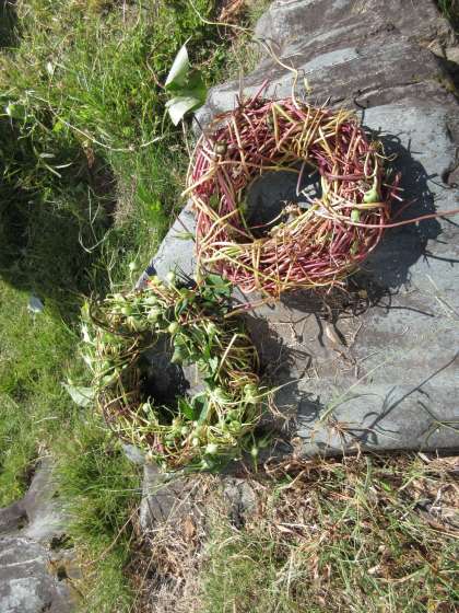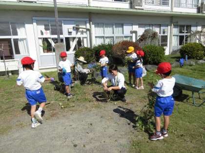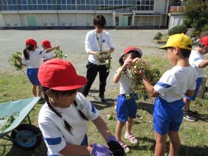 芋の蔓を使ったリースづくりに取り組みました。友達や先生と協力しながら頑張りました。