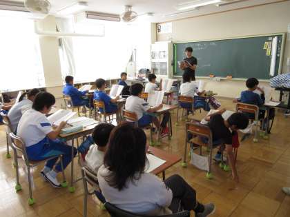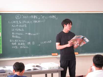 10月26日(木) 5年道徳 公開日 2023/10/26 更新日 2023/10/26 できごと 「スイミー作戦」「ガンジー作戦」を読み「いじめをなくすには、どうすればいい?」について考えました。授業は、教育実習生が行いました。