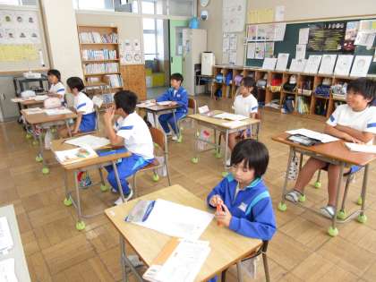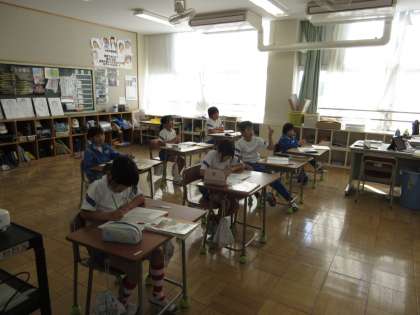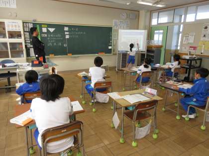 めあて「面積を計算を使ってはやくかんたんにもとめよう」を立て、一人一人が考えをもち発表し合いました。