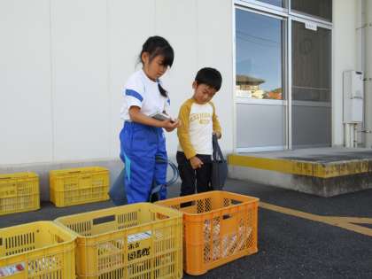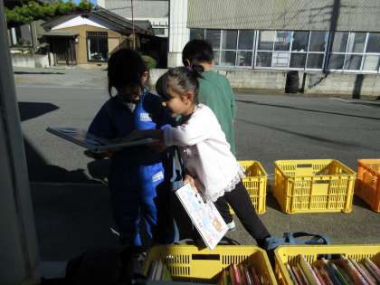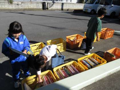 巡回図書で、子どもたちは読みたい本を選び、それぞれ借りていきました。