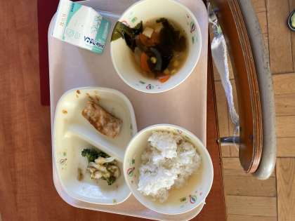 地産地消のお話を聞きました。地産地消として、藤岡北高やららん藤岡の生産者さんの野菜を給食で使っています。美味しくて、みんな食べました!
