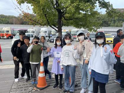 厚木PAでは、うまくトイレ休憩渋滞にハマらず、順調に進んでいます。携帯電話を担任から渡されて使い方を確認してます。