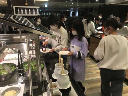 11月9日 修学旅行 公開日 2023/11/09 更新日 2023/11/09 できごと 夕飯はバイキングです。それぞれ好きな物を美味しいそうに食べていました。デザートもたくさんありましたが、ほとんどの子が最後に食べたのはソフトクリームでした。