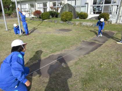 11月15日(水) 3年算数 公開日 2023/11/15 更新日 2023/11/15 できごと 昨日の子どもたちの思いを生かし、めあて「長さをはかろう(校庭編)」を立て、メジャーを使って、いろいろな物の長さを測りました。