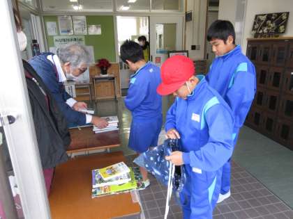 今日の巡回図書は高学年が対象でした。子どもたちは、お気に入りの本を見つけて借りていました。